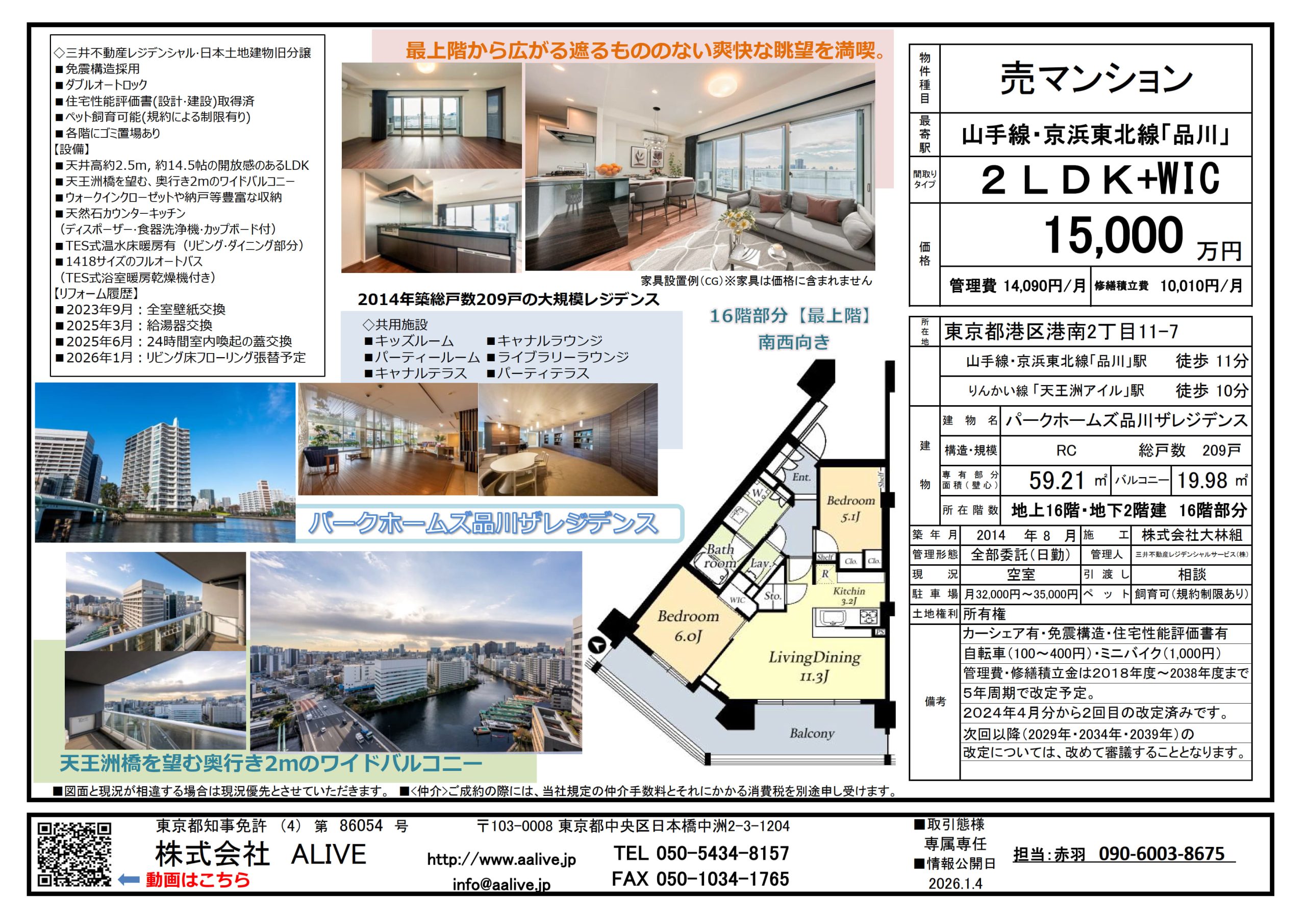 | 交通 | 山手線・京浜東北線「品川」駅 徒歩11分 りんかい線 「天王洲アイル」駅 徒歩 10分 |